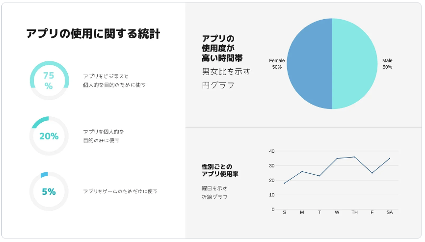 なので、テンプレートを上手にカスタマイズすることをおすすめします。デザイン性の高いものや、もとからグラフなどがそろっているものなど、多種多様ありますので、ぜひご活用くださいね。