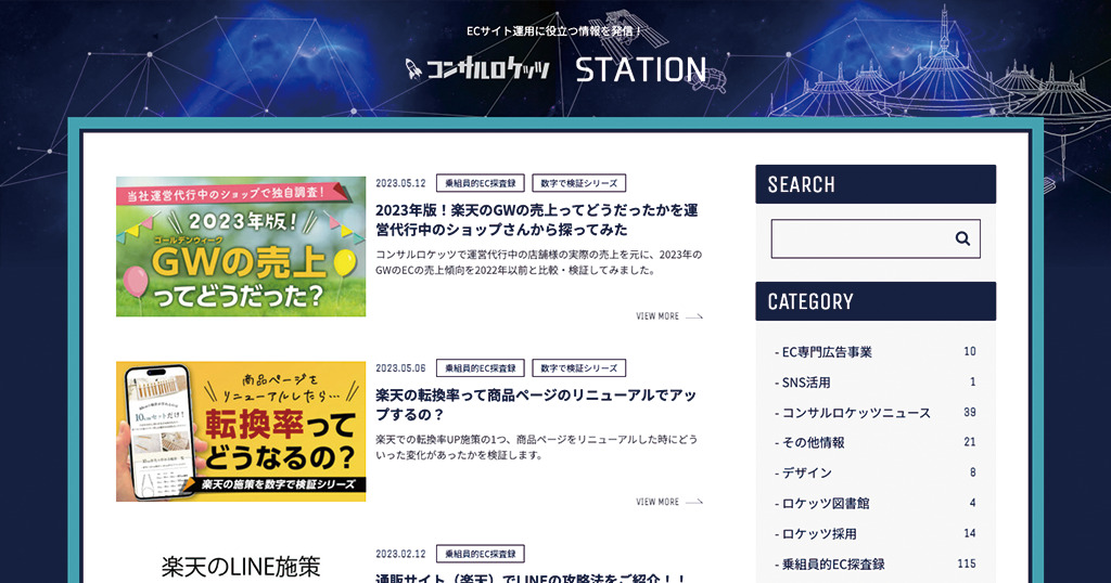 コンサルロケッツステーション 様 IT・サービス メディアサイト ECサイト運用に役立つ情報を発信!ネットショップ運営実績のあるコンサルロケッツが、御社の楽天やヤフーショッピングの商品登録やページ制作を運用代行します!お客様コンサルロケッツ株式会社 様URLhttps://c-rocketz.com/blog/業種・業界IT・サービス事業内容EC運営代行サイト種別メディアサイト担当領域CMS構築 / コーディング / サイト設計 / デザイン制作期間2ヶ月エリア兵庫県神戸市中央区最寄駅JR神戸線「三ノ宮」、各線「三宮」駅