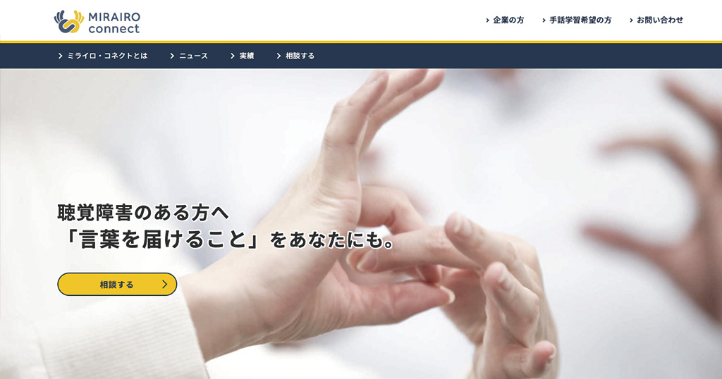 聴覚障害のある方へ「言葉を届けること」をあなたにも。ミライロ・コネクトでは、情報保障のコンサルティングを通して、情報保障の幅広い選択肢のご提供、手話講座の開催を行っております。