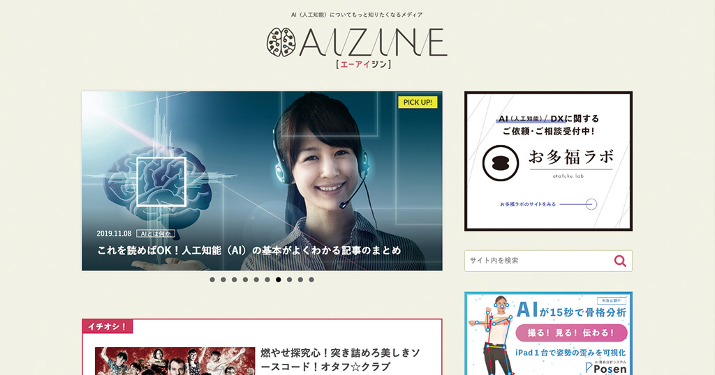 AIZINE(エーアイジン) 様 IT・サービス メディアサイト AI(人工知能)についてもっと知りたくなるメディア私達の生活に深く関わってくるであろうAI(人工知能)のあれこれを、技術者の方はもちろん、一般の方にも「あ、これ面白い」「そんな風に使われるんだ」と興味を持って貰うと共に、「読んでよかった」「面白い」「続きが読みたい」と感じていただけるコンテンツを全力で発信していきます。お客様株式会社お多福lab 様URLhttps://aizine.ai/業種・業界IT・サービス事業内容AIメディア運営サイト種別メディアサイト担当領域CMS構築 / コーディング / サイト設計 / デザイン制作期間2ヶ月エリア大阪府大阪市西区最寄駅大阪メトロ「肥後橋」駅