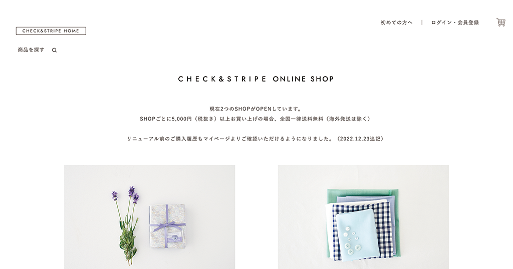 CHECK&STRIPE ONLINE SHOP 様 小売・販売 ECサイト CHECKやSTRIPEを中心に気軽に使っていただけるような布をご紹介世の中には奇抜な色やデザインのものがあふれています。 そうではなく、ずっとそばにおいていてもほっとするような・・・ そんな色柄のものを追求しています。お客様株式会社ラブロ 様URLhttps://checkandstripe-onlineshop.com/業種・業界小売・販売事業内容布や雑貨の販売サイト種別ECサイト担当領域CMS構築 / コーディング / サイト設計 / システム開発 / デザイン制作期間6ヶ月エリア兵庫県芦屋市最寄駅JR神戸線「芦屋」駅