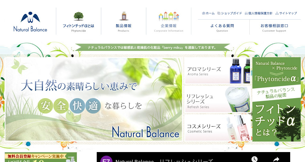 殺菌・消臭作用に優れたフィトンチッド。その大自然の恵みを生かしたナチュラルバランス製品で安全・快適な毎日をお過ごし下さい。